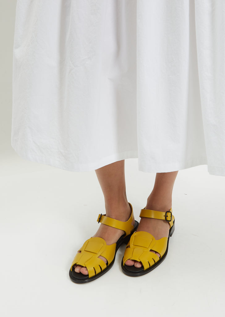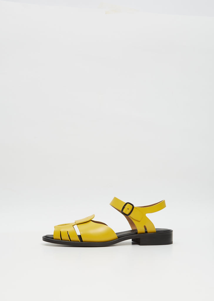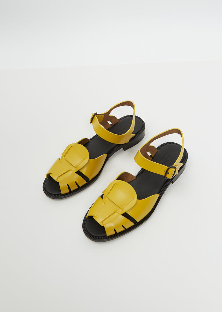 Hereu light ochre open-toe fisherman sandal with cut out front detail, handcrafted in Spanish full-grain calf leather.