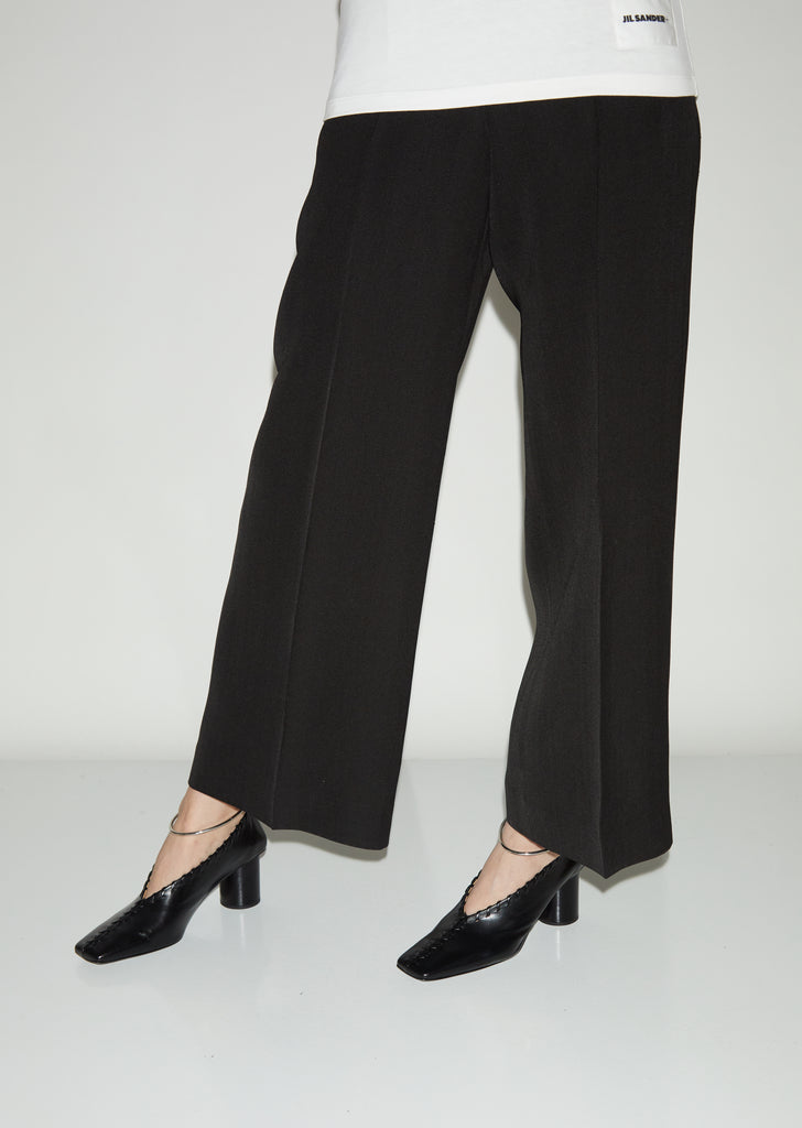 Signature black square-toe pump in supple Nappa leather, featuring this season's updated silhouette and black sole.