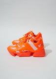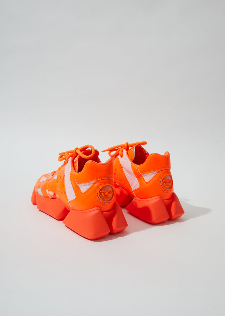 A collaboration between Junya Watanabe and cult ‘90s shoemaker Buffalo London, these graphic lace-up running sneakers feature an upper of bright-orange synthetic leather and mesh, set atop a divided, platform-inspired foam-rubber sole. This candy-colored low-top style is finished with Buffalo London branding at the tongue, vamp, and heel counter.