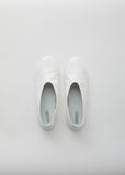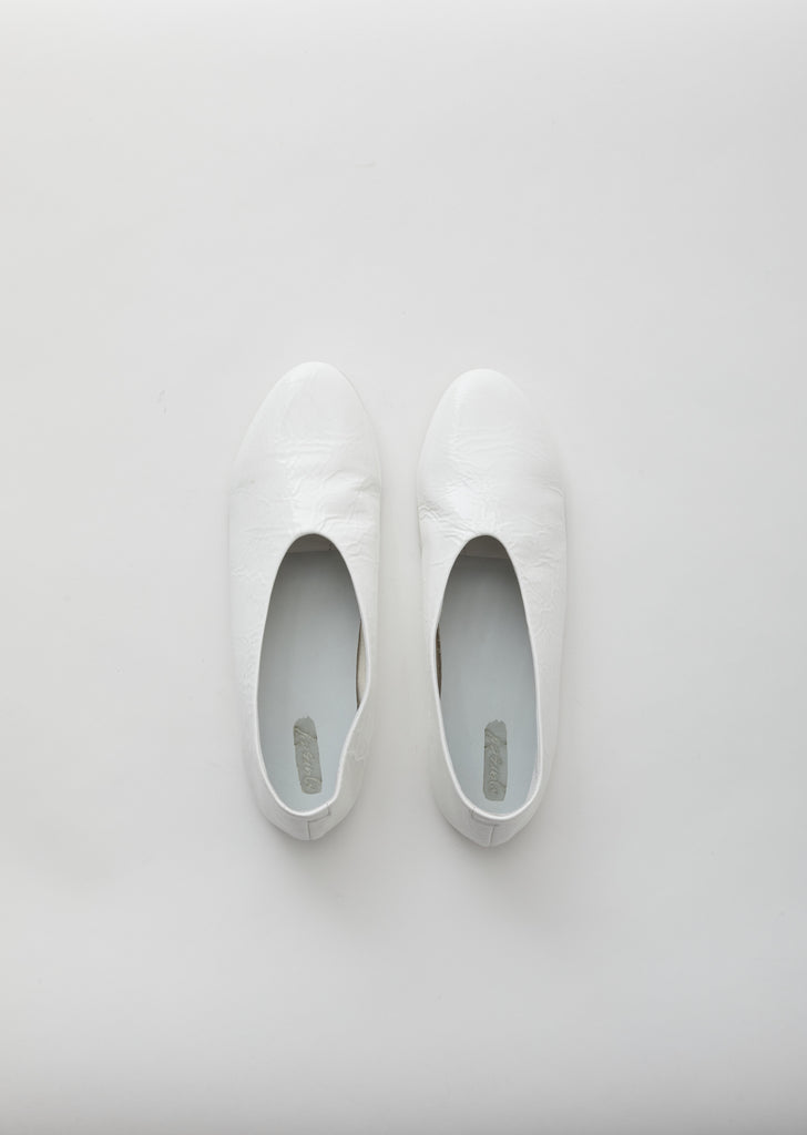 Signature ballet flats by Marsell, updated in an optic white leather with a cracked paint texture, a glossy finish and a tonal sole.