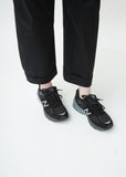 Black and Silver suede sneakers with sporty mesh inlays giving this lace-up style breathability.  Finished with a logo rubber outsole and premium cushioned soles. Made in the U.S. Also available in Grey/Castlerock Nimbus Cloud/Team Red.