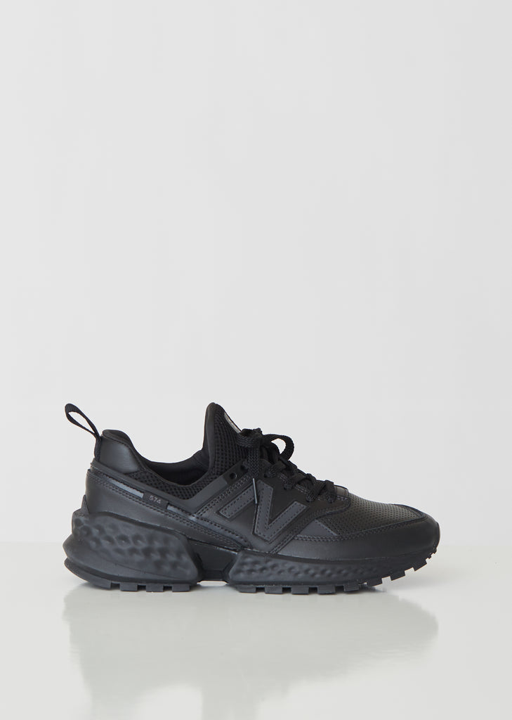New Balance 547 Sport sneakers in monochrome black. Updated for the new season, featuring a minimalist profile with geometric leather and mesh accents and a lightweight-yet-sturdy leather upper. Detailed with Fresh Foam midsole cushioning. C-CAP® midsole provides cushioning and support. Treaded soles. Color: Black. Leather/Mesh; Sole: 100% Rubber. Imported.