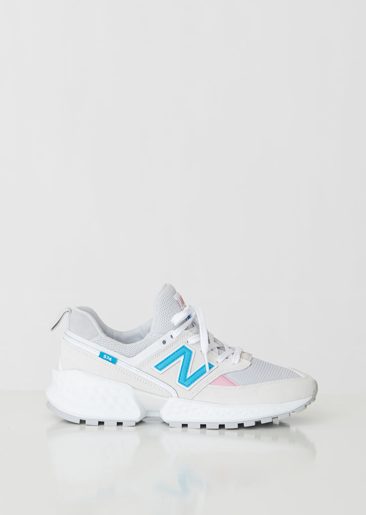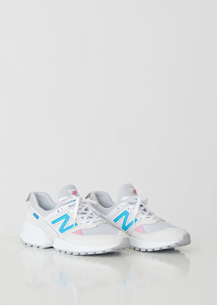 New Balance 547 Sport sneakers in Arctic Fox with Deep Ozone Blue lettering. Updated for the new season, featuring a minimalist profile with geometric suede and mesh accents and a lightweight-yet-sturdy leather upper. Detailed with Fresh Foam midsole cushioning. C-CAP® midsole provides cushioning and support. Treaded soles. Color: Artic Fox/Deep Ozone Blue. Uppers: Mesh/Leather; Sole: 100% Rubber. Imported.