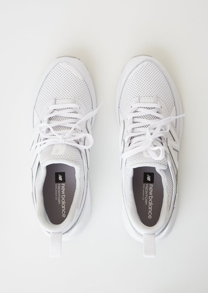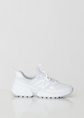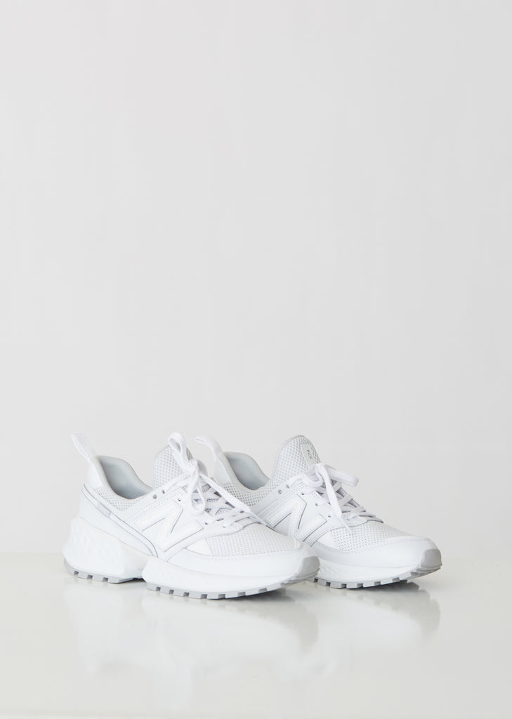 New Balance 547 Sport sneakers in monochrome white. Updated for the new season, featuring a minimalist profile with geometric leather and mesh accents and a lightweight-yet-sturdy leather upper. Detailed with Fresh Foam midsole cushioning. C-CAP® midsole provides cushioning and support. Treaded soles. Color: White. Leather/Mesh; Sole: 100% Rubber. Imported.