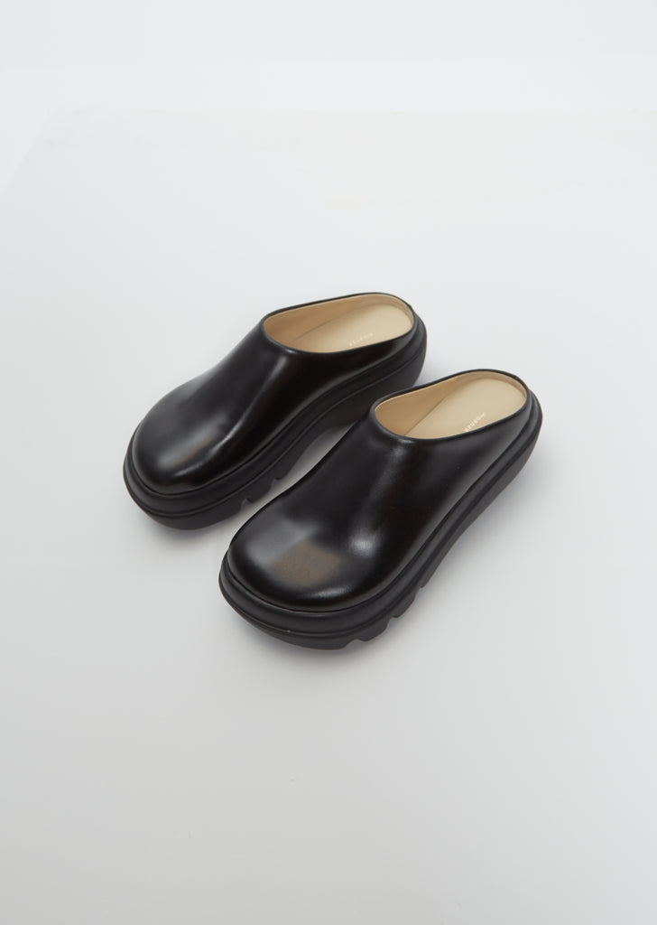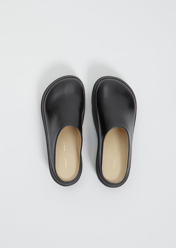 Proenza Schouler black chunky slip-on mule in a smooth calf leather.