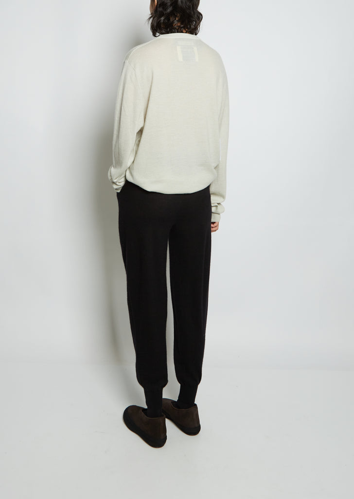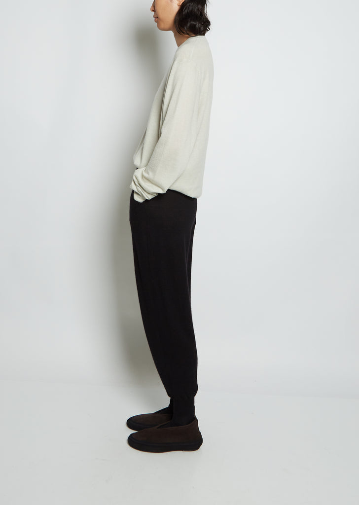 Frenckenberger black high-waisted tapered leg joggers in an ultra-soft lightweight cashmere knit.