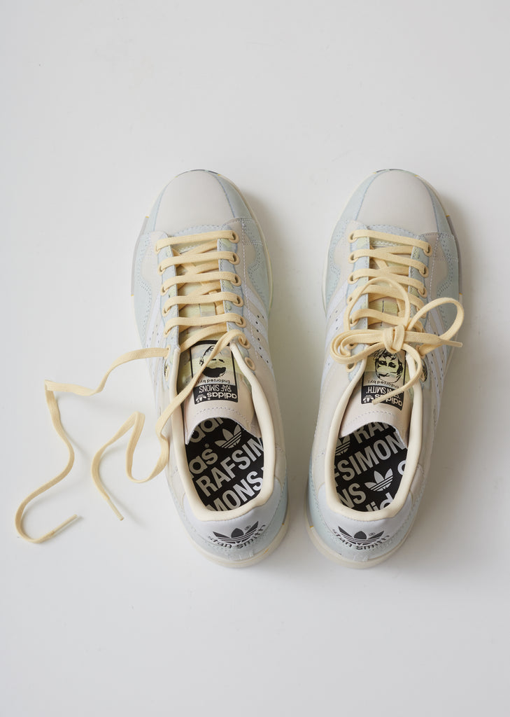In collaboration with the Belgian designer, Adidas offers a trompe l'oeil rendering of the classic Peachtree trainers. New concepts are brought to vintage through a subtle tricolor leather and printed "Raf Simons" on side. Featuring perforated R detail.