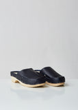 The label's Donau clogs in navy are handmade from Italian vegetable-tanned leather. They feature a cool artisanal look with wooden soles and silver-tone staples along the midsole. Permanently inserted sole rubber for a supportive feel. Treaded rubber soles. 2.75" heel. Color: Navy. Uppers: 100% Leather; Soles: Wood, rubber. Made in Austria.