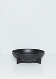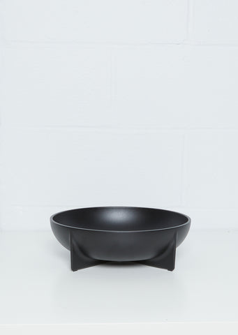 FS Objects die cast aluminum large round standing bowl with architecturally inspired legs that elevate its contents to centerpiece status. ​​Each bowl is powder coated with a slight textured matte finish to catch the light and add a unique feel to the space it inhabits. Unfinished and will naturally get darker and develop a patina with time and touch. The ideal fruit bowl.