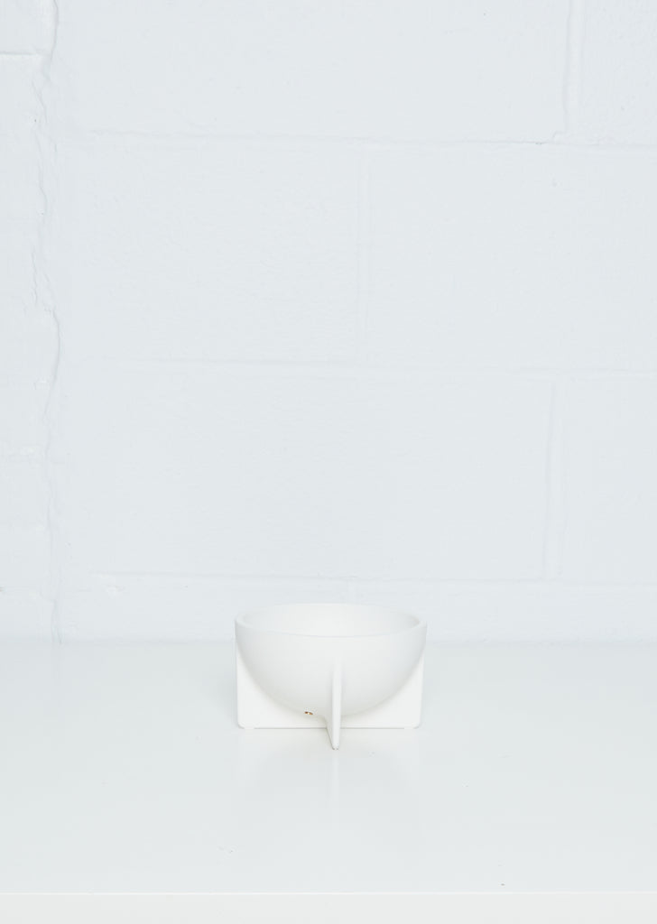 FS Objects die cast aluminum Small Round Standing Bowl is elevated off the table surface by its architecturally inspired planar legs. Each bowl is matte powder coated with a slight texture to catch the light and add an enjoyable feel.