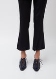 Heeled lace-up mule crafted from glossy navy crocodile-embossed leather. Slips on. Squared-off almond toe. Closed lacing system. Gunmetal-tone eyelets. Round tonal leather laces. Self-covered slim heel. Leather sole. Metallic-stamped logo at footbed. Burgundy leather lining.