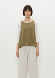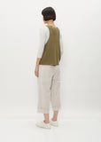 Album di Famiglia olive green sweater vest with scoop neckline in pure cashmere. Features deep cut armholes and merrow stitch finished trim.