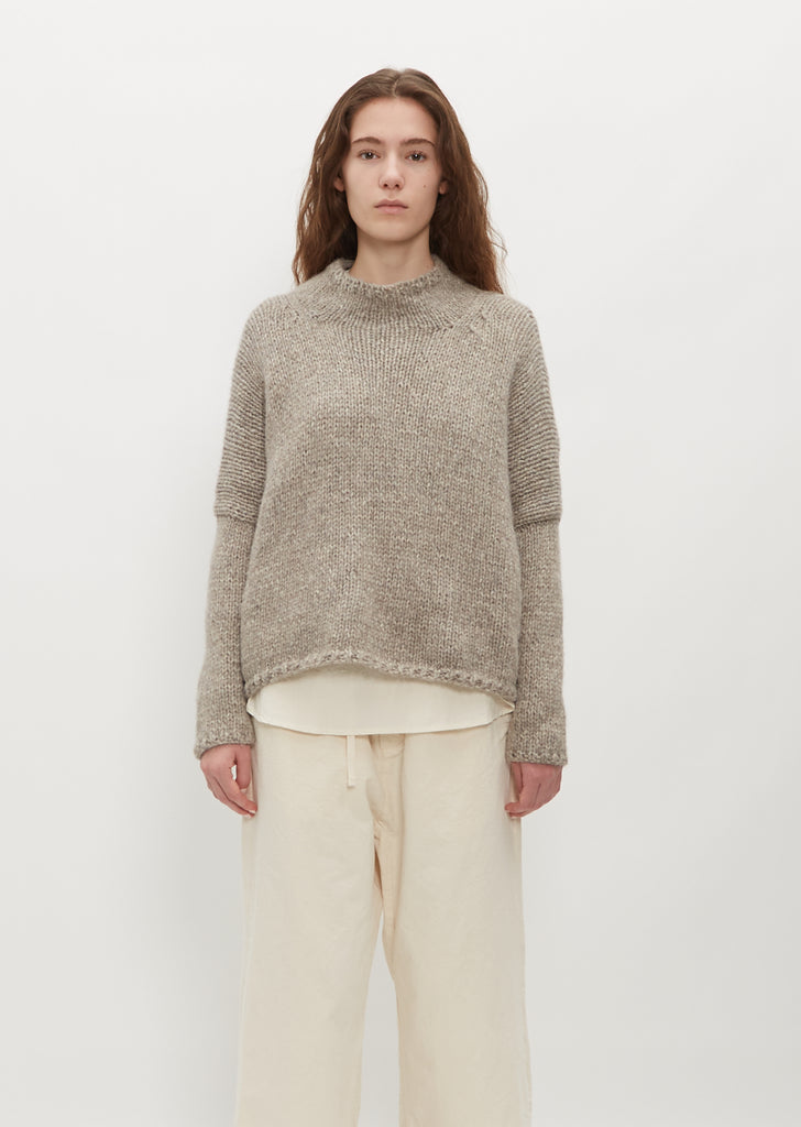 Hand Knit Oversized Alpaca and Wool High Neck — Grey