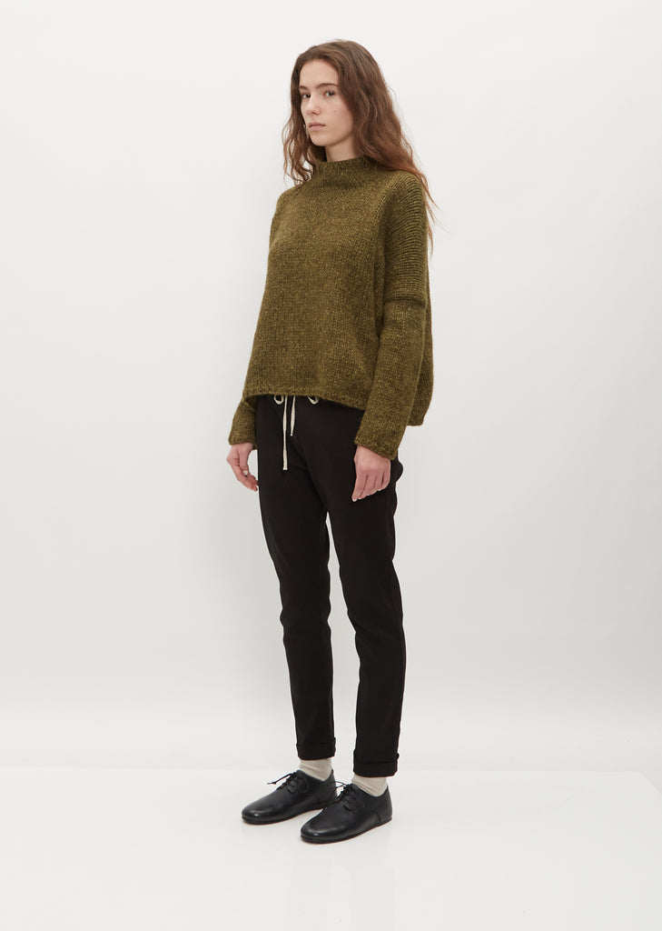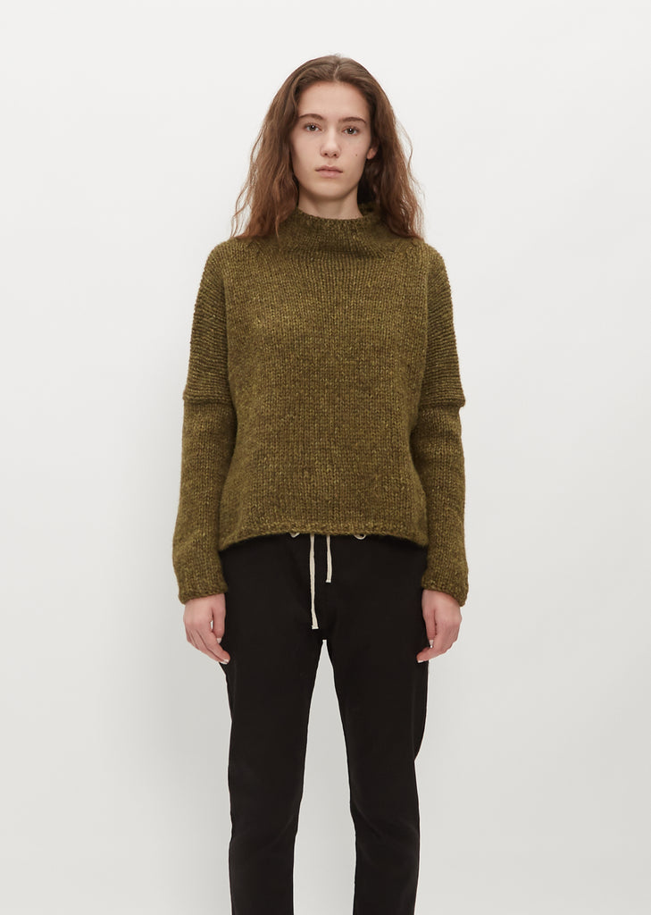 Hand Knit Oversized Alpaca and Wool High Neck — Olive