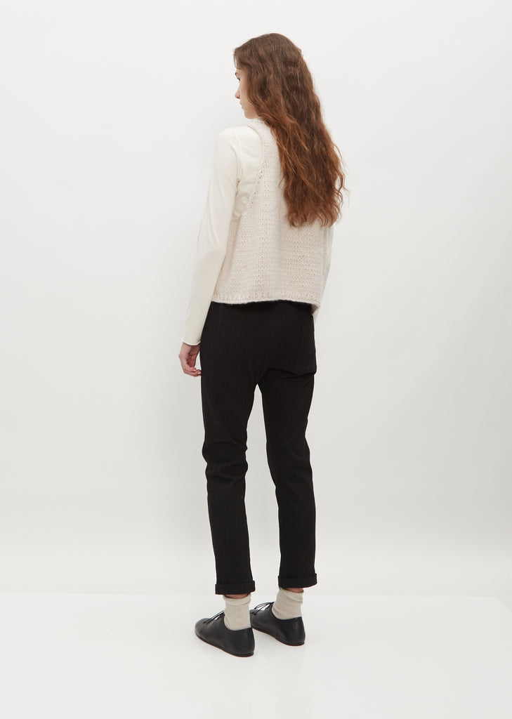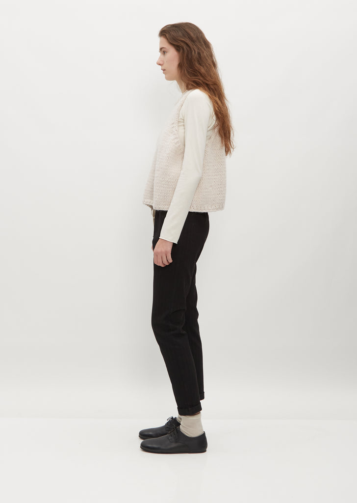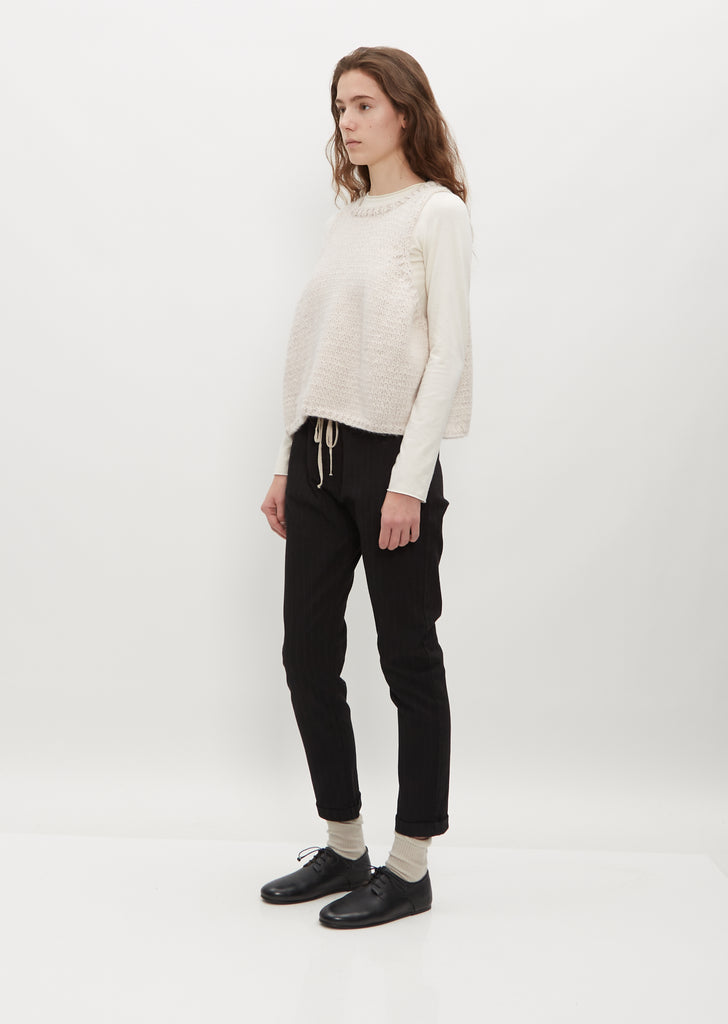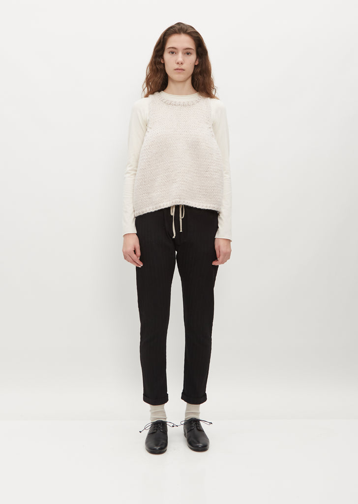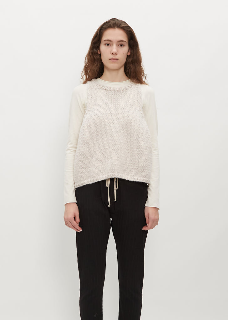 Album di Famiglia pale pink-grey vest hand knitted in heavy gauge alpaca, cotton and wool blend. Boxy silhouette with an oversized fit.