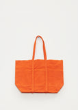 Amiacalva orange medium tote bag with three exterior and interior slip pockets in a light pre-washed cotton canvas. Dual top handles. Three exterior and interior pockets. Gusseted base. Branded leather patch at interior pocket. Unlined.