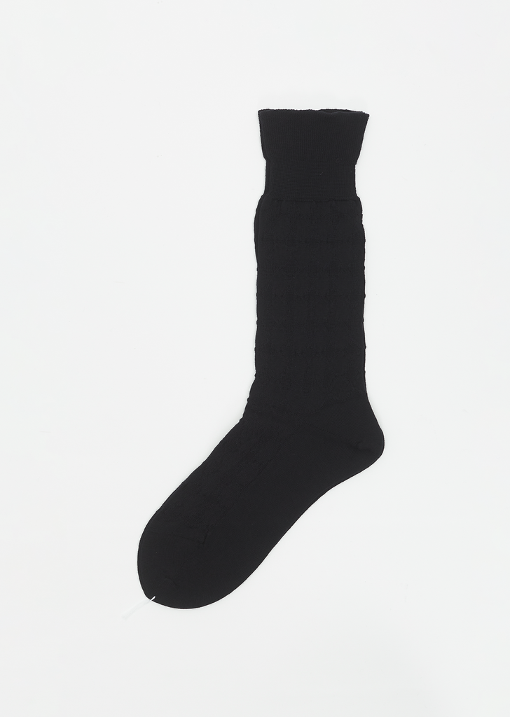 Antipast black crew socks with a diamond link jacquard pattern knit in a wool blend.