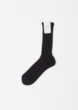 Auralee black trouser socks in a ribbed high gauge cotton blend knit.