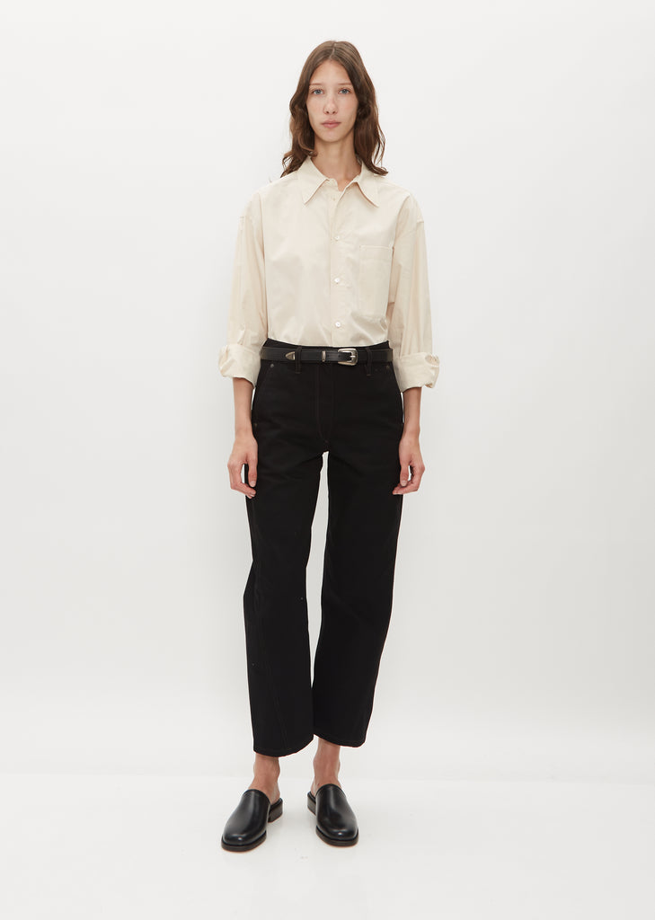 Lemaire black western style belt is made of vegetable tanned leather with a compact grain. It features a double closure system, a snap, stud details and a removable buckle. Offered in three different lengths.