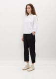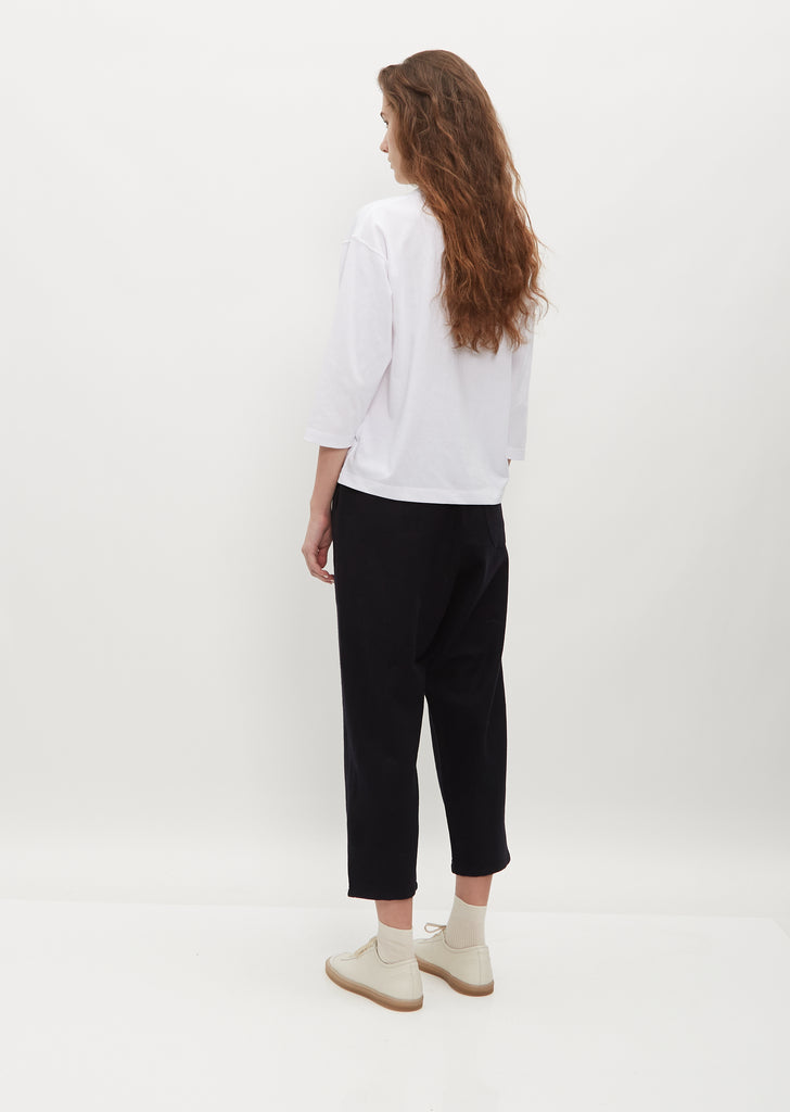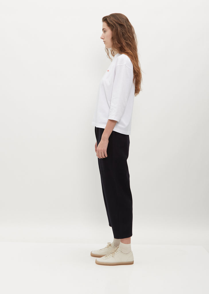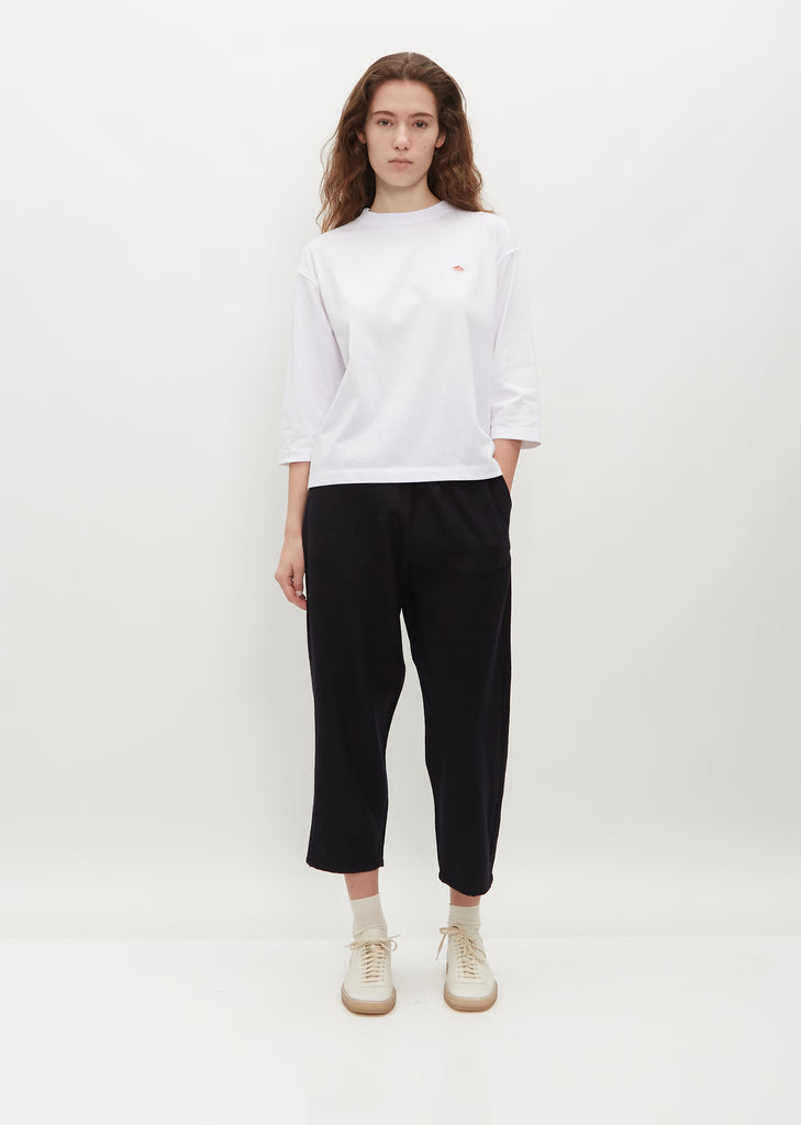 Brand Signature Piece — Danton navy pant with cropped, tapered legs in light-weight wool fleece. Slight tapered silhouette with a relaxed fit.