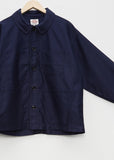 Danton blue over shirt with a wide fit and spread collar in cotton gabardine. Features hip patch pockets, single chest patch pocket and tonal buttons. This jacket is unlined.