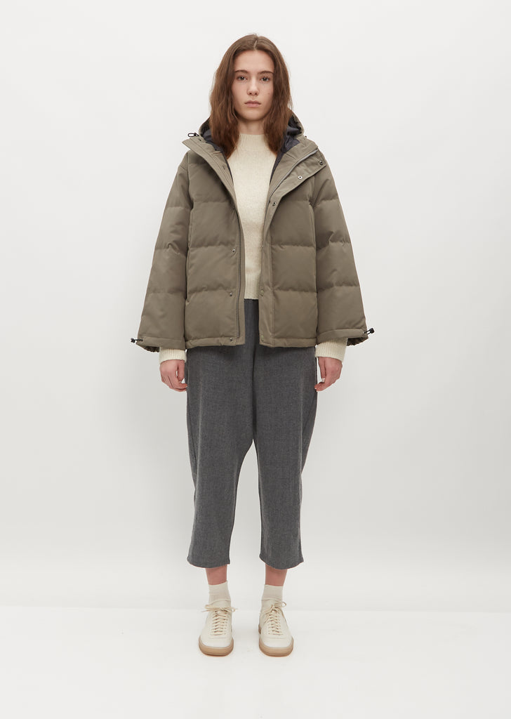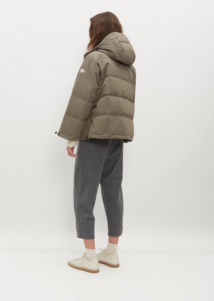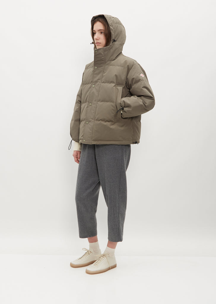 Danton light olive down filled zip front jacket with hood in technical fabric. Boxy silhouette with a regular fit.