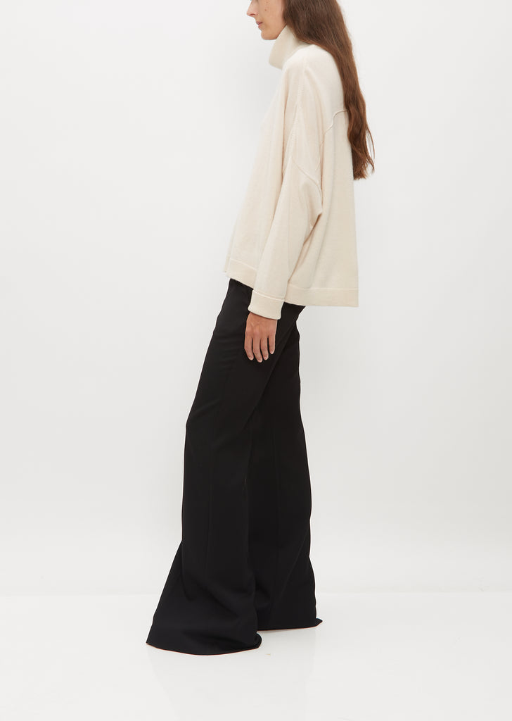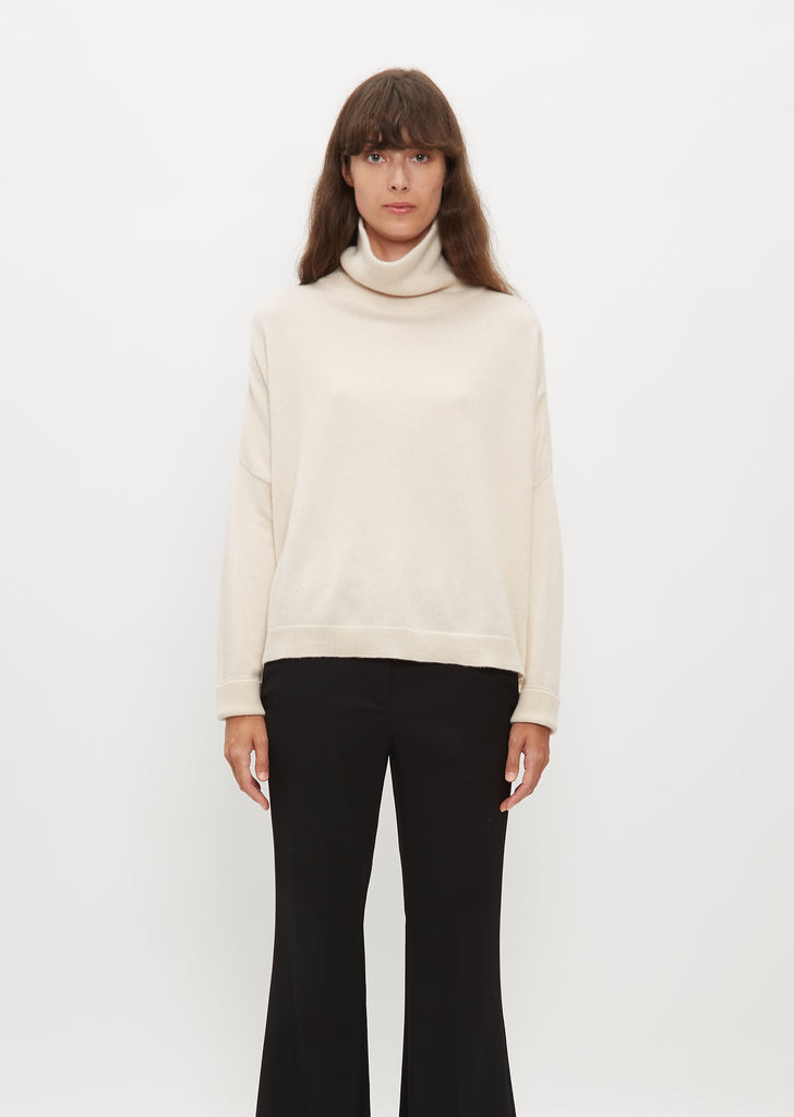 Dušan off-white turtleneck sweater knit in heavyweight pure cashmere. Features a slightly cropped length, boxy silhouette, dropped shoulders, a pronounced yoke seam and cuffed sleeves that can be worn unfolded if preferred. Finished with ribbed trim along cuffs and hem.