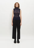 Issey Miyake finely pleated sleeveless top with a slim fit and high funnel neck in semi-sheer chiffon.