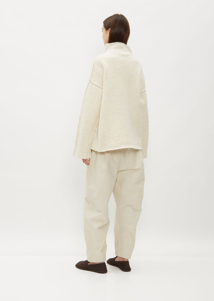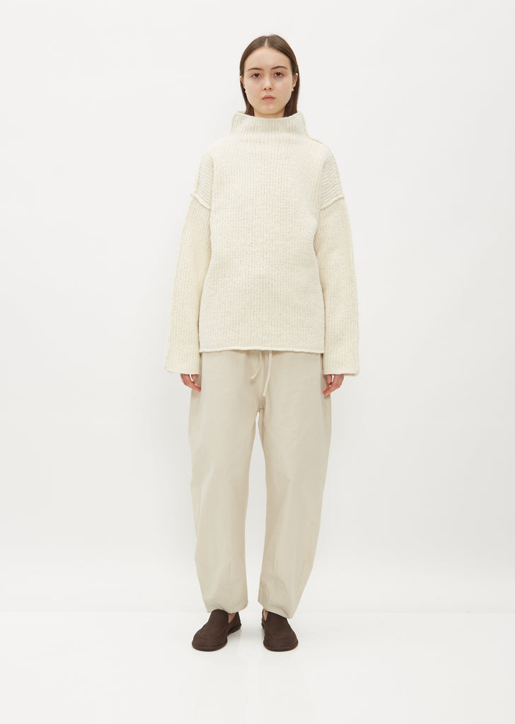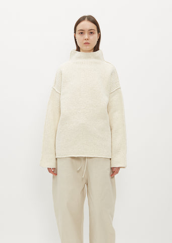 Lauren Manoogian raw white sweater with a boxy fit and turtle neckline knit in pure heavyweight merino wool. Features dropped shoulders and continuous rib trim finish edges.