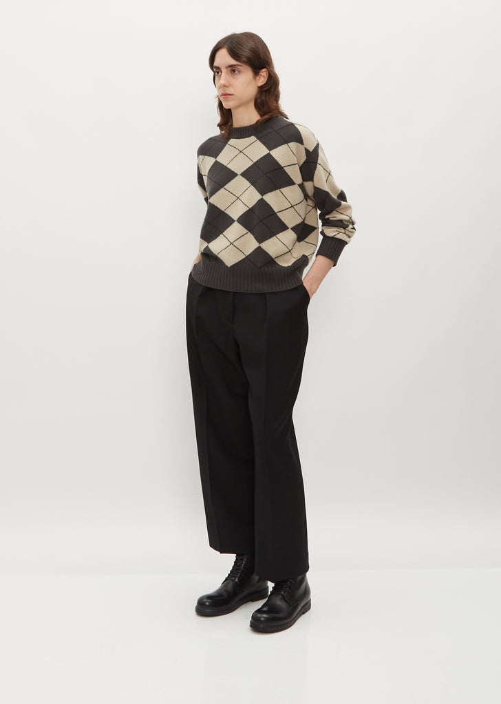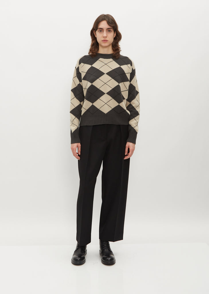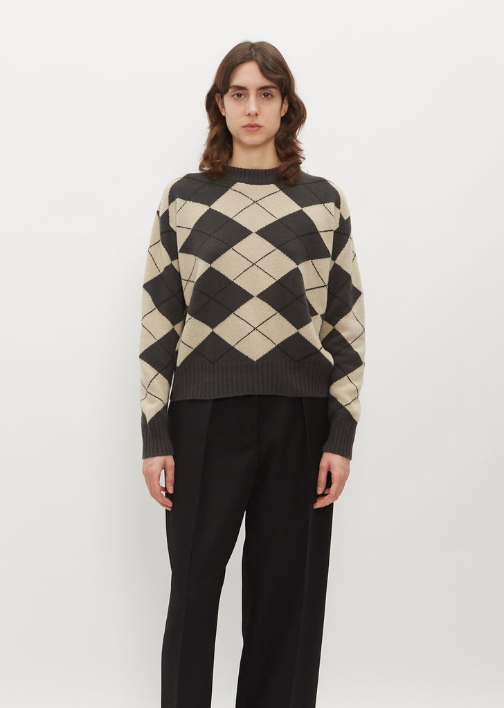 Oversized Merino Cashmere Argyle Jumper — Khaki/Ecru