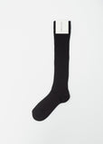Maria La Rosa black knee high socks in a soft ribbed merino blend knit with reinforced toe, heel, and top.