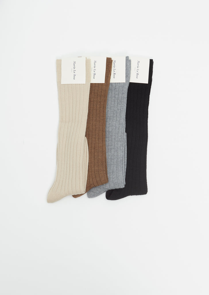 Maria La Rosa natural knee high socks in a soft ribbed merino blend knit with reinforced toe, heel, and top.