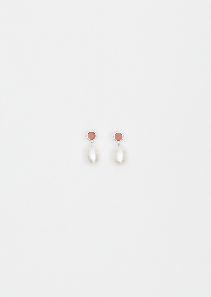 Sophie Buhai elegant baroque pearl drop earrings with red jasper stone. Silver post closure.