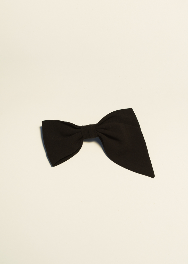 Permanent Collection — Sophie Buhai black silk crepe bow with asymmetrical detail with a stainless steel French barrette.