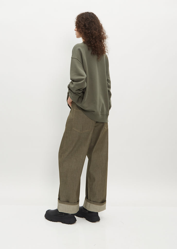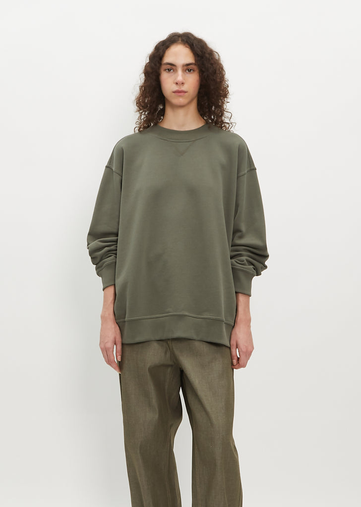 Sofie D'Hoore khaki sweatshirt with a crew neckline in fleece lined cotton jersey. Features classic v stitching under neckline and ribbed trim along neck, cuffs, and hem. Oversized fit.
