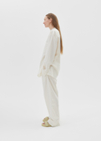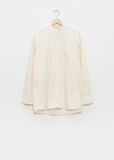 Birkenstock x Tekla — Unisex shirt with an oversized fit in tightly woven crisp organic cotton with a smooth, even finish, then lightly stonewashed for a soft hand feel. The extra-long yarns used prevent pilling and guarantee a deep, pure color even after years of use. Features a mini band collar, single chest patch pocket, straight hem and side splits. Finished with French seams and Mother of pearl buttons.