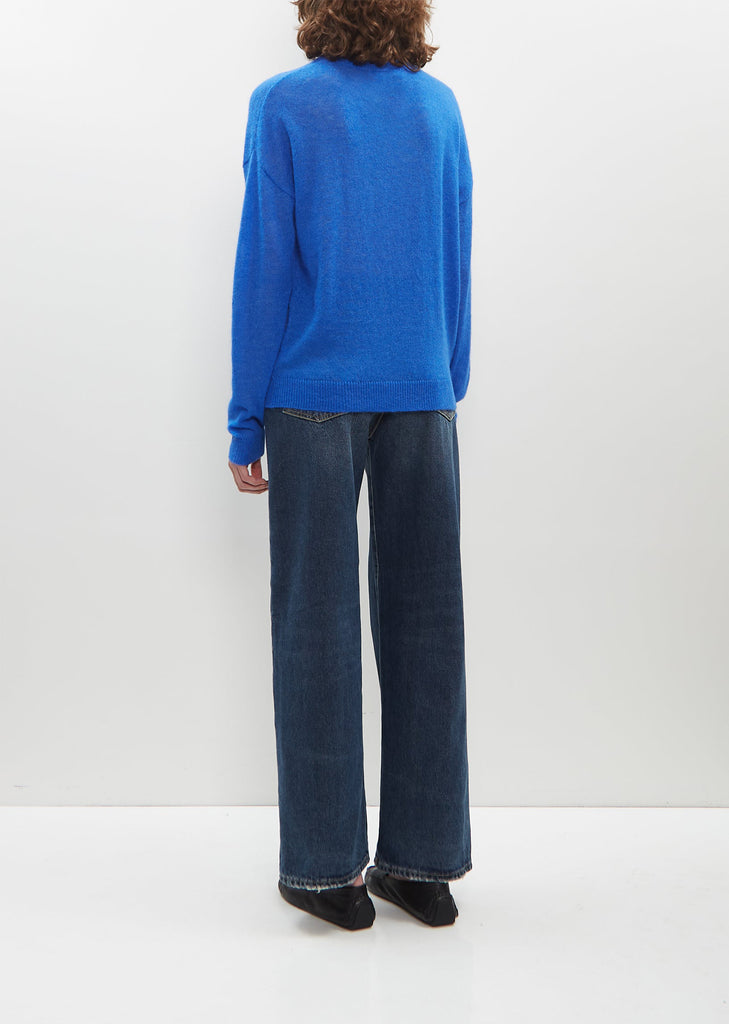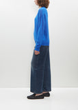 6397 blue crewneck sweater with dropped shoulders in lightweight alpaca wool blend. Features a rib trim at neck, cuffs and hem. Relaxed fit.