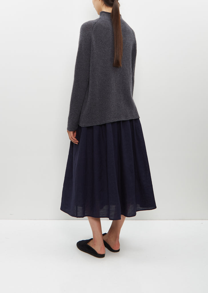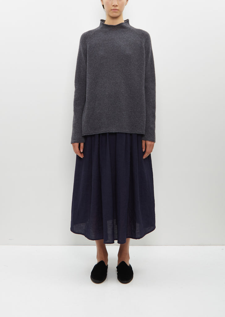 Apuntob anthracite grey long sleeve sweater with a high neck in cashmere and alpaca blend knit. Features raglan sleeves and overlock finish at neck, cuffs and hem. Regular fit.