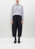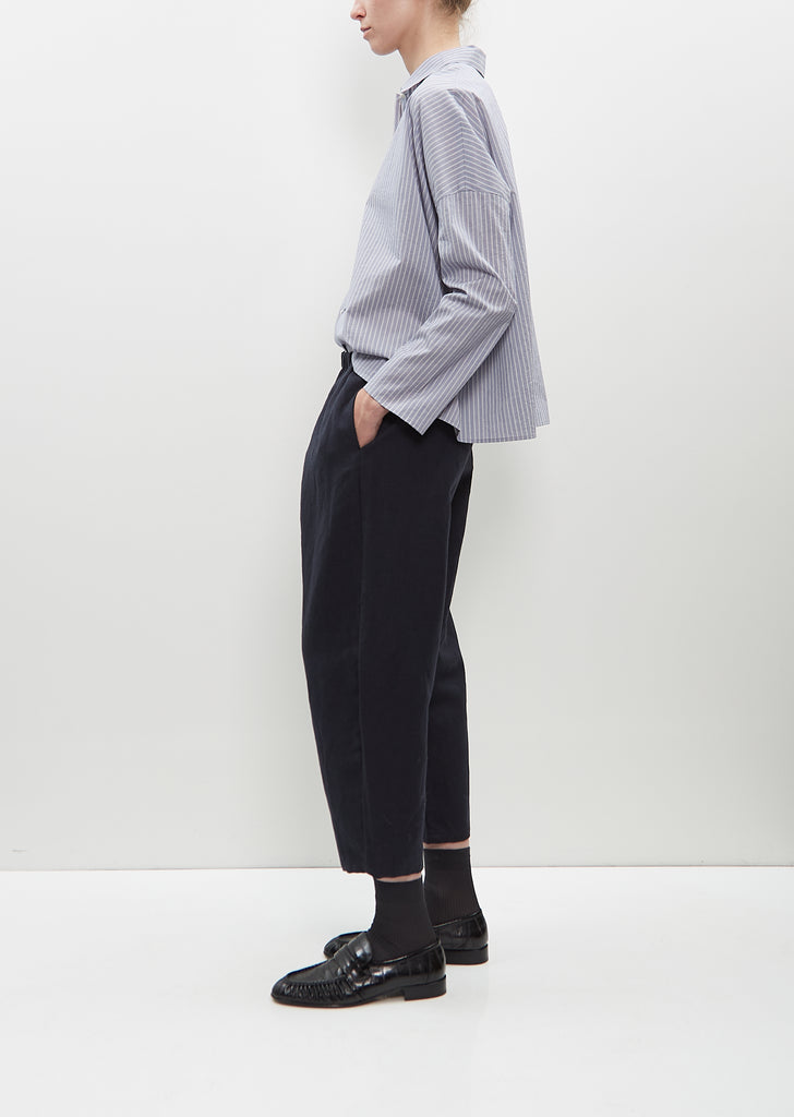 Apuntob night blue cropped pull-on trousers with wide legs and elasticated waist in heavy wool and linen blend. Features side seam pockets. Relaxed fit.