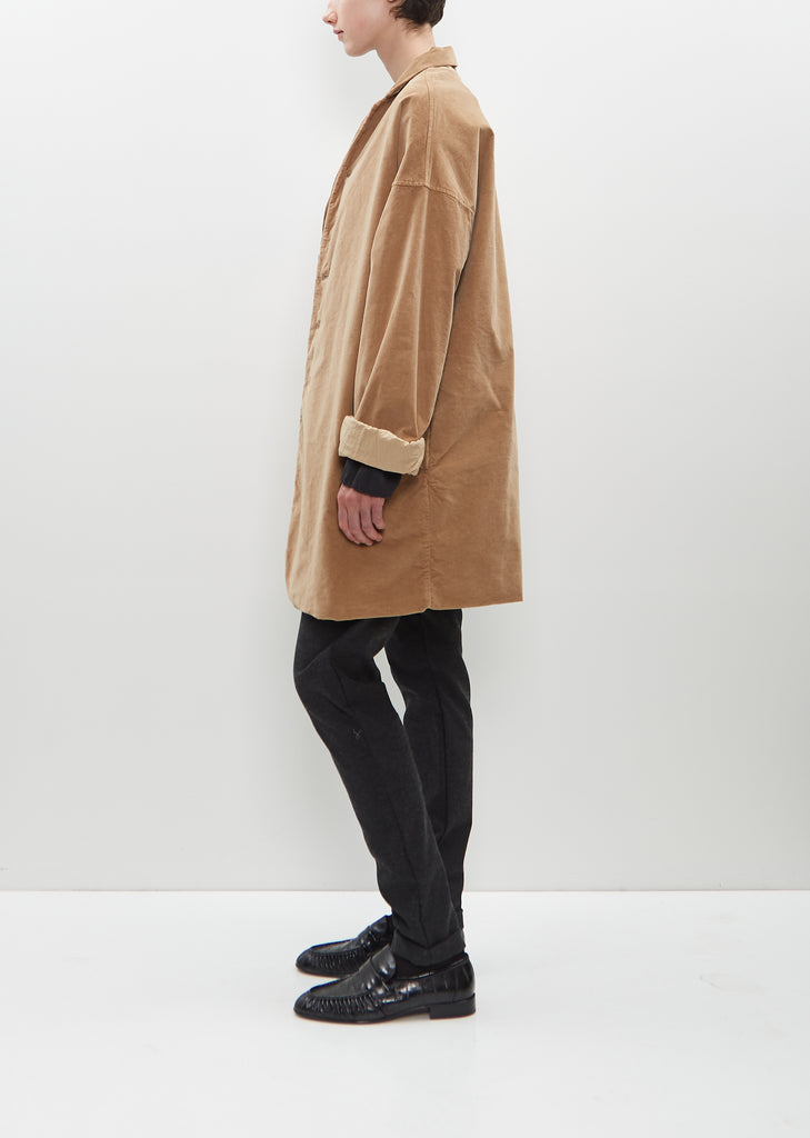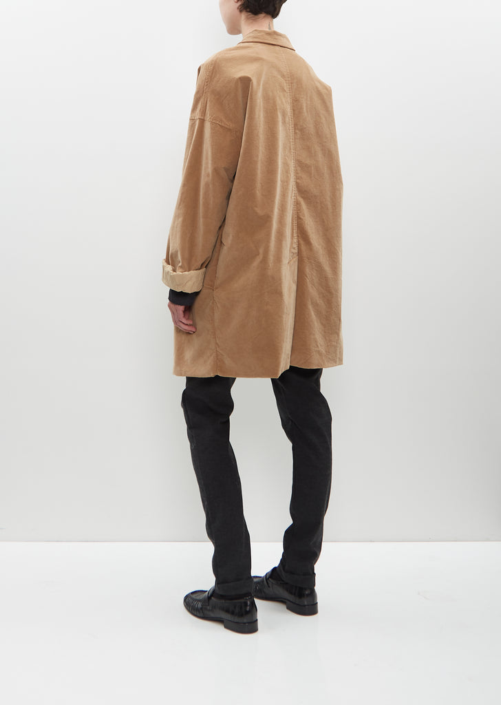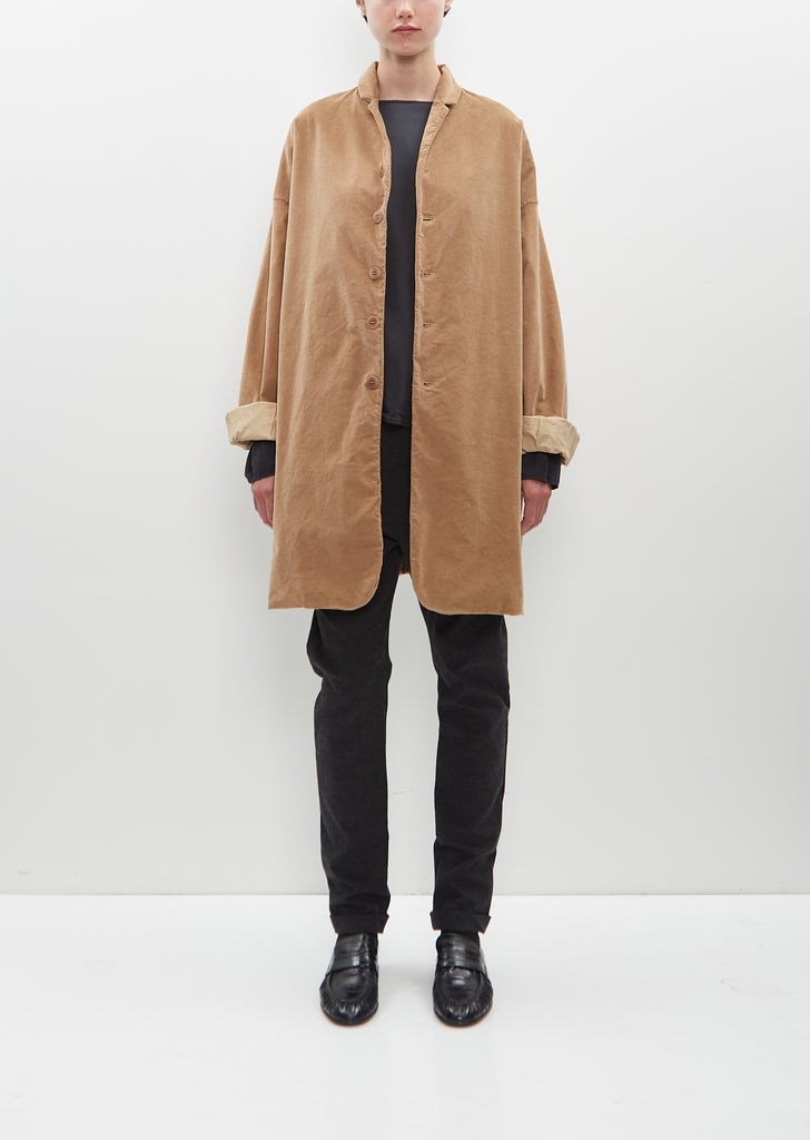 Album di Famiglia sugar long blazer with mini notched lapels in stretch cotton velvet. Features dropped shoulders, side seam pockets and a tonal buttons closure at front. Fully lined in tonal cotton fabric.