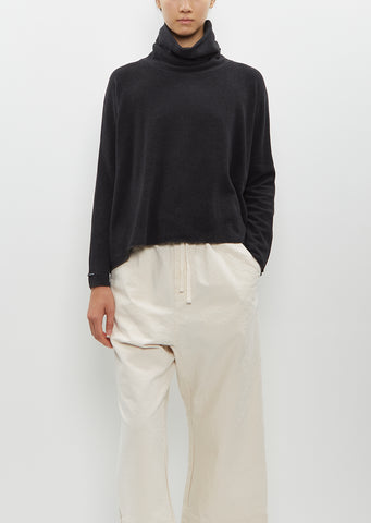 Album di Famiglia signature long sleeve jersey sweater in slate grey with a fold-over high turtleneck in a soft, cotton blend knit. Features signature marrow edge finish at sleeve and hem. Relaxed fit.
