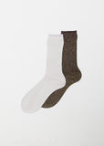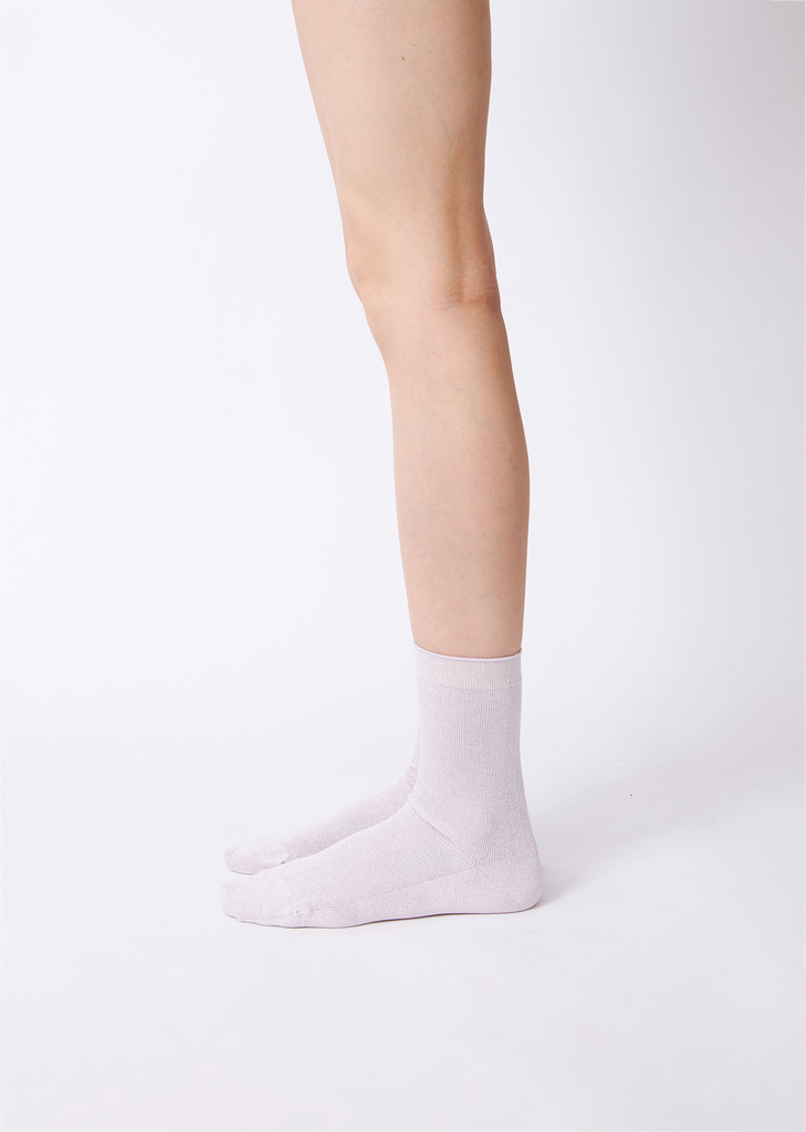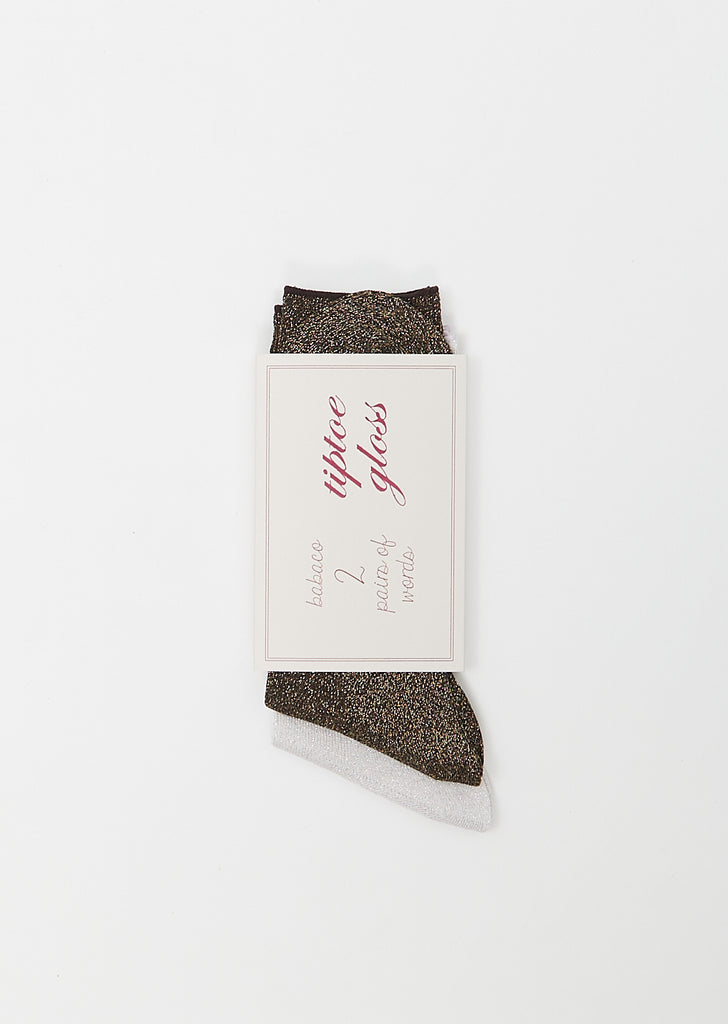 Babaco brown and light pink pair of socks with reinforced toe, heel, and top in nylon blend knit with metallic finish.