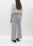 Bergfabel light blue tailored trousers with wide straight legs in cotton and cashmere blend corduroy. Features front pleats, slash side pockets, a single welt pocket at back, belt loops and a concealed buttons fly at front with a single visible button at top waist.