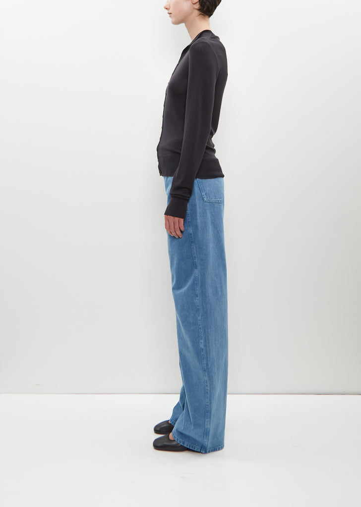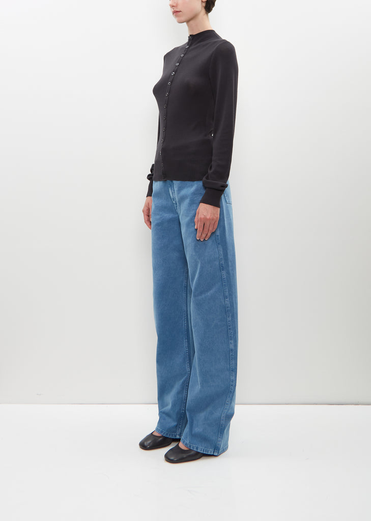 Lemaire signature seamless cardigan sweater made of fine merino wool with a soft handfeel.  Features a small stand collar, relaxed elongated sleeves with thumbhole to offer more warmth to the hands. Finished with rib trim at cuffs and hem.