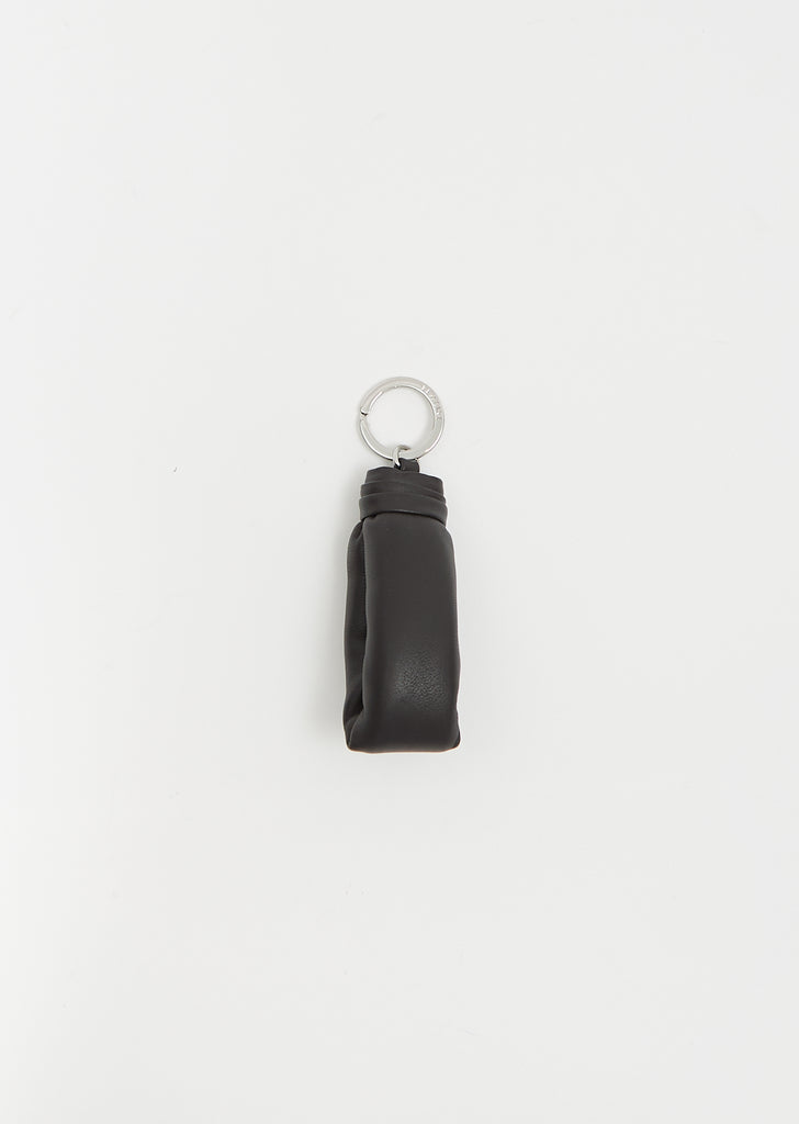Lemaire dark chocolate key holder inspired by the padded leather detail from the signature Croissant bag. Features a silver-tone key ring with a folded padded leather loop.