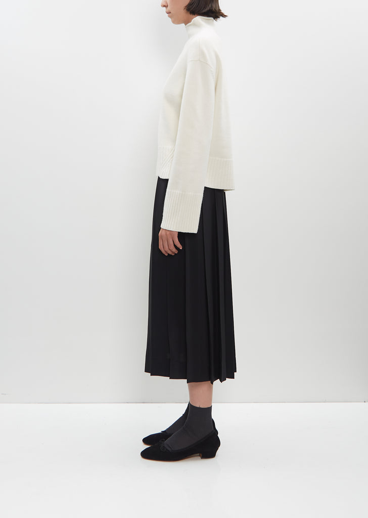 Fforme natural slightly cropped sweater with a fully fashioned funnel neck in felted wool-cashmere. Features dropped shoulders, ribbed trim at cuffs and hem, and a slightly longer hem in the back.