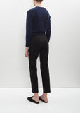 High Sport black cropped pull-on pant with straight legs in soft cotton and lycra blend knit with a subtle checkered pattern throughout. Features an elasticated waistband, belt loops, pin-tucks at front and back legs, and two faux welt pockets at back.