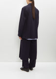 Issey Miyake midnight navy double breasted soft blazer in cupro and paper blend twill. Features notched lapels, darts at waist for a closer fit, two patch pockets at front and a back pleat.
