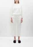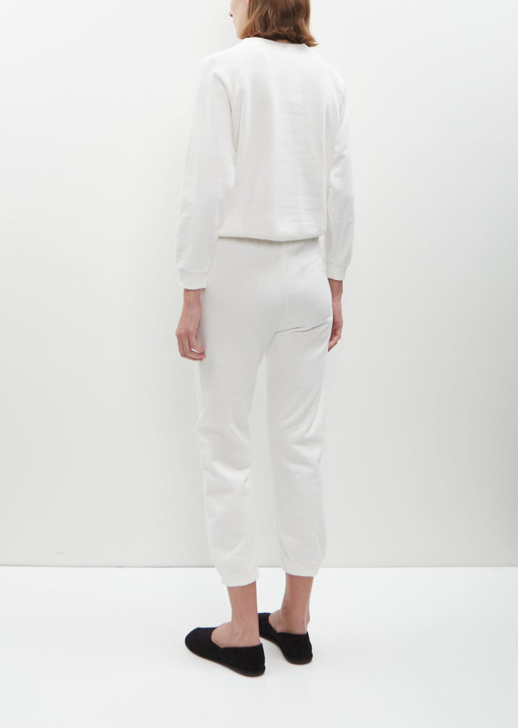 Signature, elevated pull-on sweatpant with a mid-rise and slightly tapered at knee in white Japanese ultra-soft cotton fleece, designed with a cropped silhouette and seamless sides for a polished look. Features slip pockets and a gathered elasticized waistband and cuffs. Cropped at mid-calf with an easy fit.