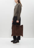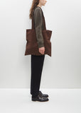 MHL by Margaret Howell mahogony tote bag in linen cotton twill. Features shoulder straps and top handles. Finished with black logo on bottom right corner.